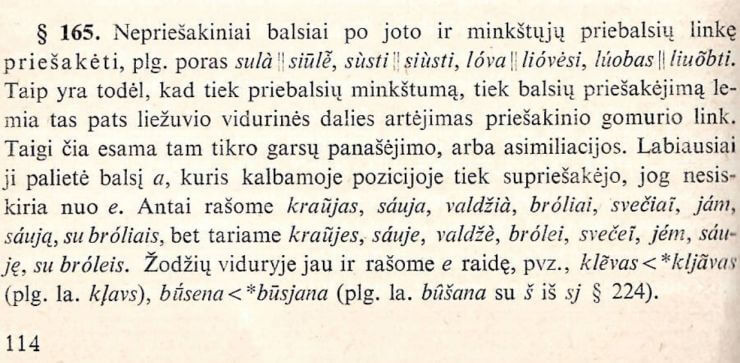 Zinkevičius Zigmas: Lietuvių kalbos istorinė gramatika 1 t. 1980 m. 165 § 114 psl.